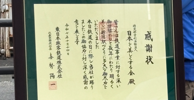 【JR東日本の代表取締役社長より、感謝状をいただく!】
